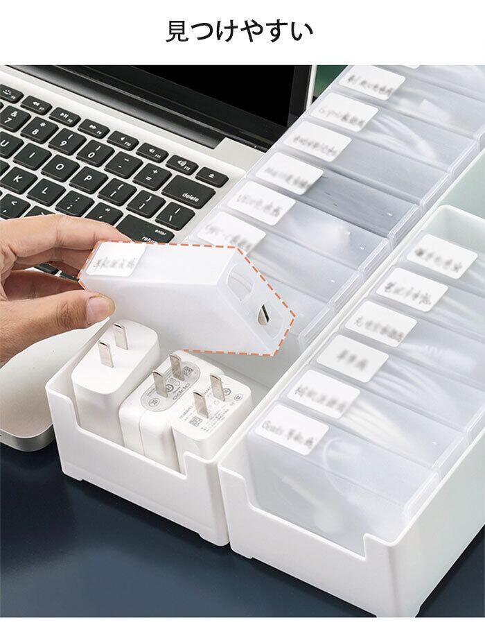 セット02:直方体収納ボックス(L)x1、小型データケーブル収納ボックスx10
