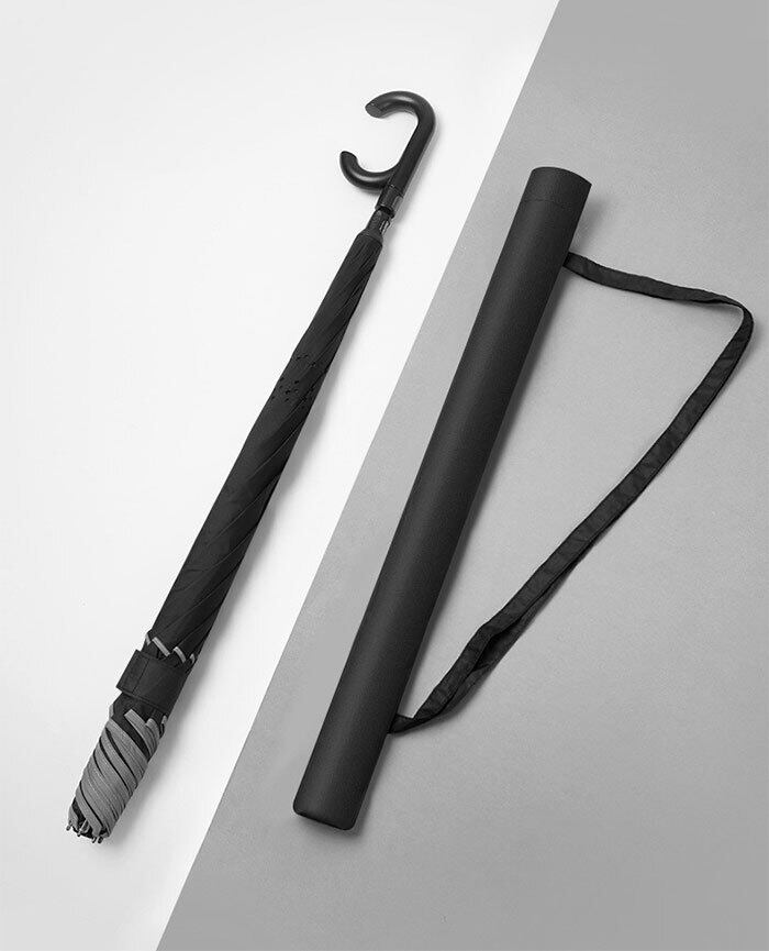 逆さまに開いて逆さまに閉じる長傘です。水滴が内側に収納されのため、洋服や荷物が濡れることなくて周りの人にも迷惑なし。