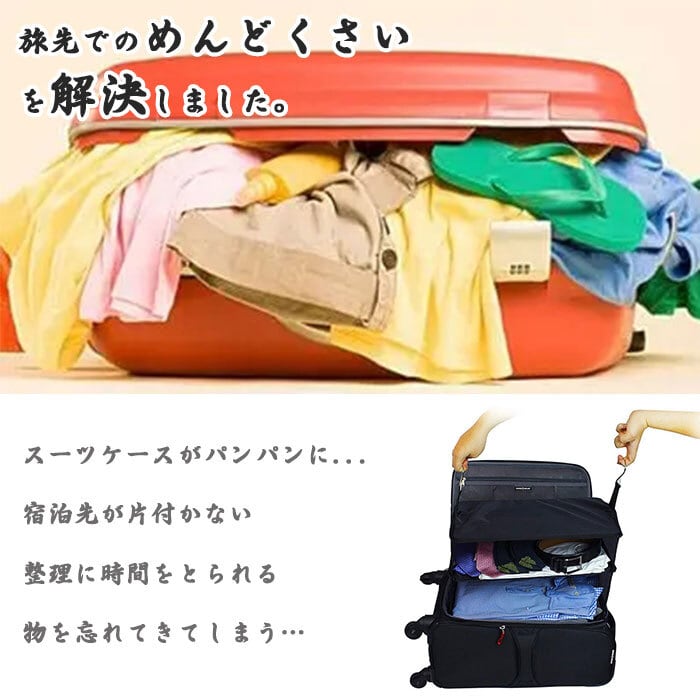 【誰でも荷物整理の達人に】機内持ち込み可能サイズのキャリーケースにぴったりサイズ、アコーディオン型ポーチはクローゼットのハンガーポールに吊り下げるだけで棚のように変身!滞在先での荷物整理が不要に。