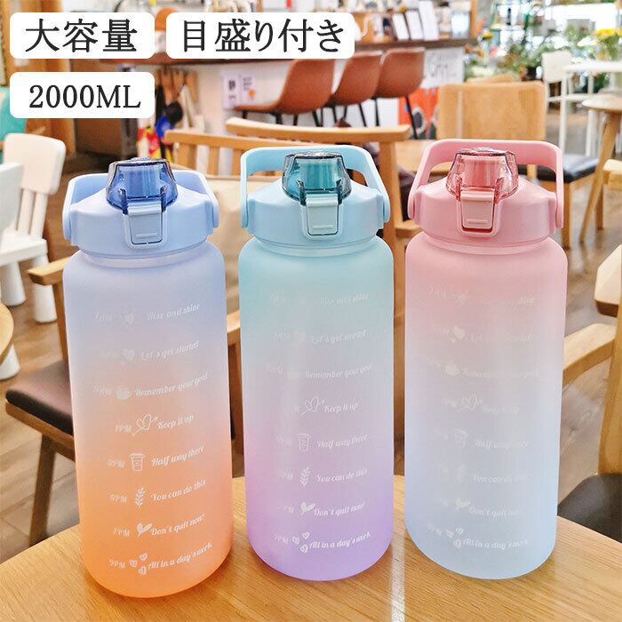 水筒 目盛り付き 水筒 2L ウォーターボトル 2リットル タイムマーカー 携帯便利 漏れ防止 ストロー付き 男女兼用 子供 キッズ 目盛り 大容量 軽量 直飲み 女の子 おしゃれ スポーツ かわいい 女子 大人 スポーツボトル 耐冷耐熱 携帯便利 部活 通学通勤 | TPSどんどん