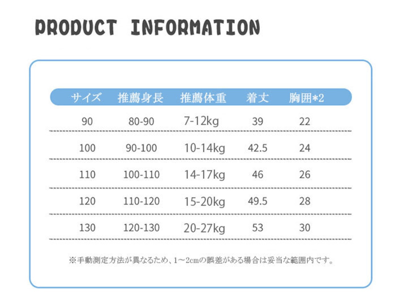 90cm、100cm、110cm、120cm、130cm