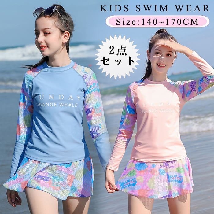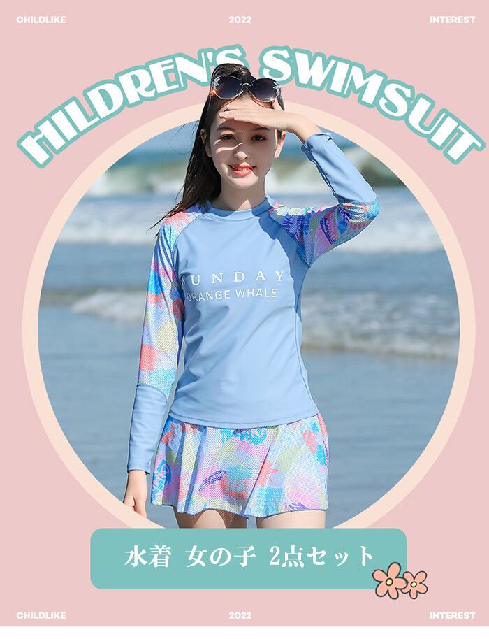 キッズ 水着 女の子 2点セット 女の子 水着 セパレート 下セット 体型カバー ラッシュガード 長袖 子供 水着 スクール水着 トップス パンツ レデイース 水着 みずぎ 子ども ジュニア 女の子 水着 スポーツウエア おしゃれ 吸水速乾 水泳授業 海 プール ビーチ 紫外線対策 | TPSどんどん