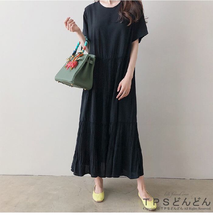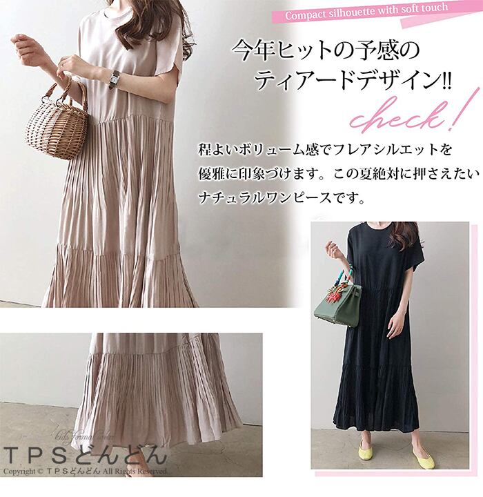 ロングワンピース 夏 半袖 ワンピース レディース ティアード Aライン マキシ ゆったり ナチュラル フレアシルエット 無地 体型カバー シンプル 上品 大人 通勤 OL パーティ 大きいサイズ 結婚式 20代 30代 40代 | TPSどんどん