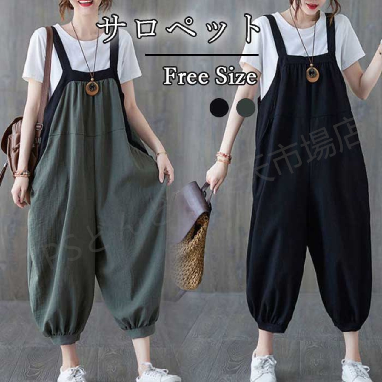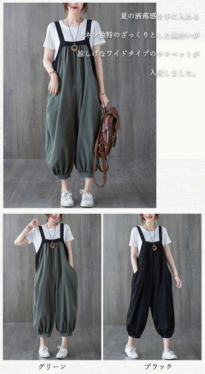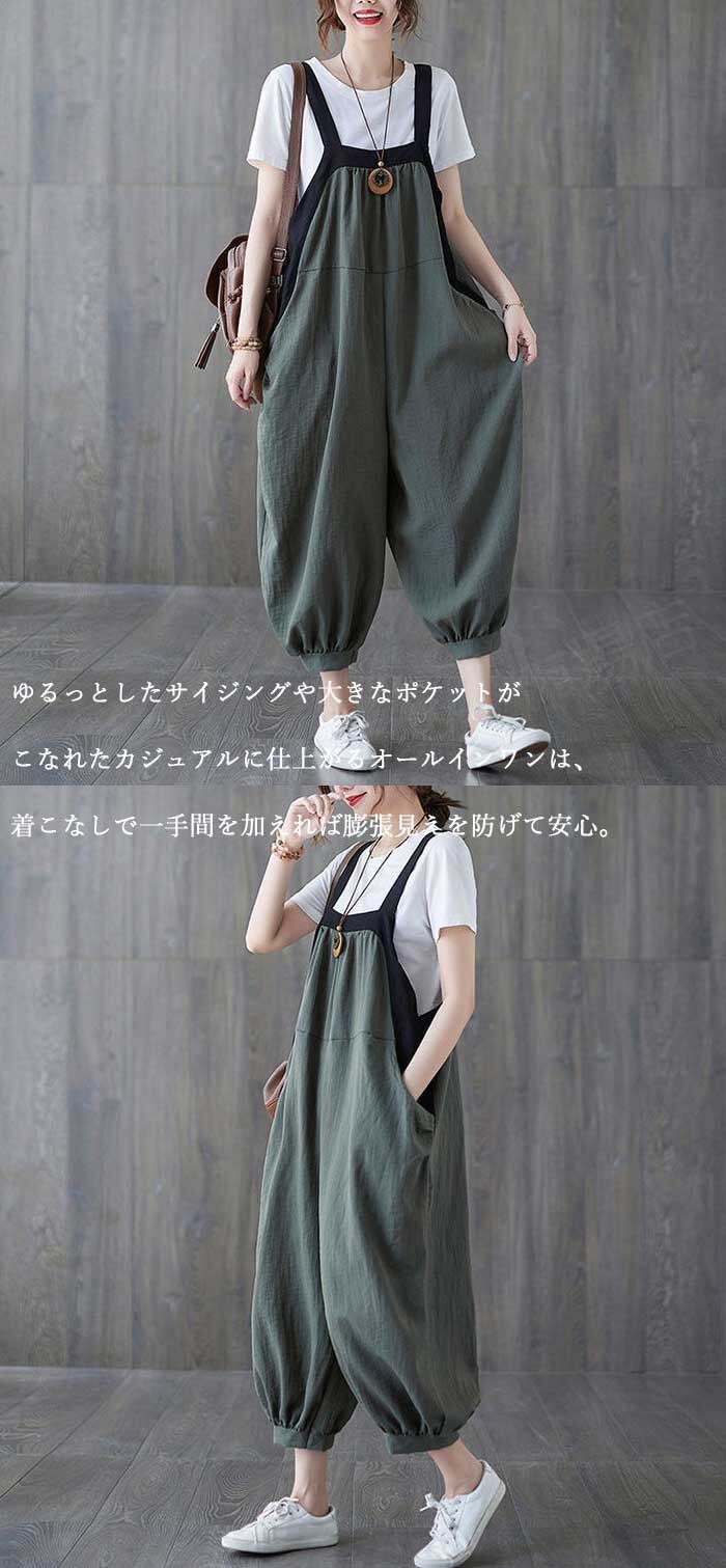 サロペット パンツ レディース オールインワン オーバーオール パンツ サルエル リネン 大きいサイズ きれいめ 楽ちん ゆったり ロング 無地 ワイドパンツ オーバーオール 体型カバー 大きいサイズ 着痩せ 涼しい ワイドパンツ 春夏秋 サロペット 美脚 脚長 | TPSどんどん