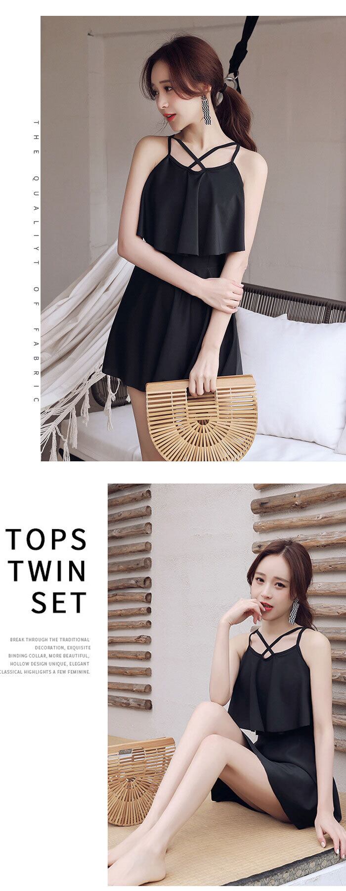 編み上げバックスタイルがポイントで、体型カバーにも万能なワンピース型の水着です。首の後ろへ肩紐を回すホルターネック仕様でしっかりとしたホールド感!