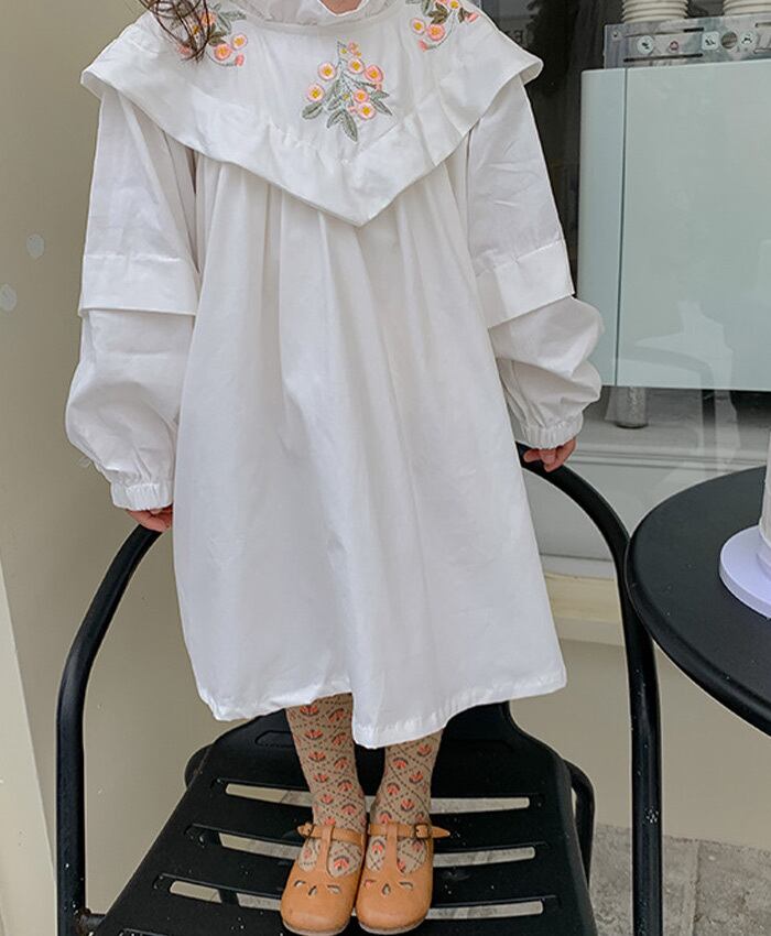 子供 ワンピース 刺繍 ワンピース レース襟 ワンピース ビッグ衿ゆったり ワンピース きれいめ 女の子 ワンピース 入学式 卒園式 卒業式 ハイウエスト 子供服 キッズ かわいい カジュアル 春 夏 秋 90 100 110 120 130 140cm | TPSどんどん
