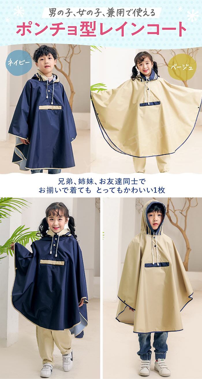 レインコート 子供 キッズ 男の子 女の子 ランドセル対応 リュック 雨風防ぐ ポンチョ タイプ 子供 雨具 レインウェア 紐調整付き 携帯バッグ付き 雨 カッパ かわいい おしゃれ 入園 入学 通学 雨具 自転車 レインウェア | TPSどんどん