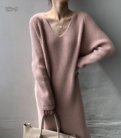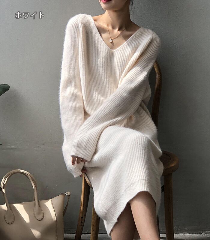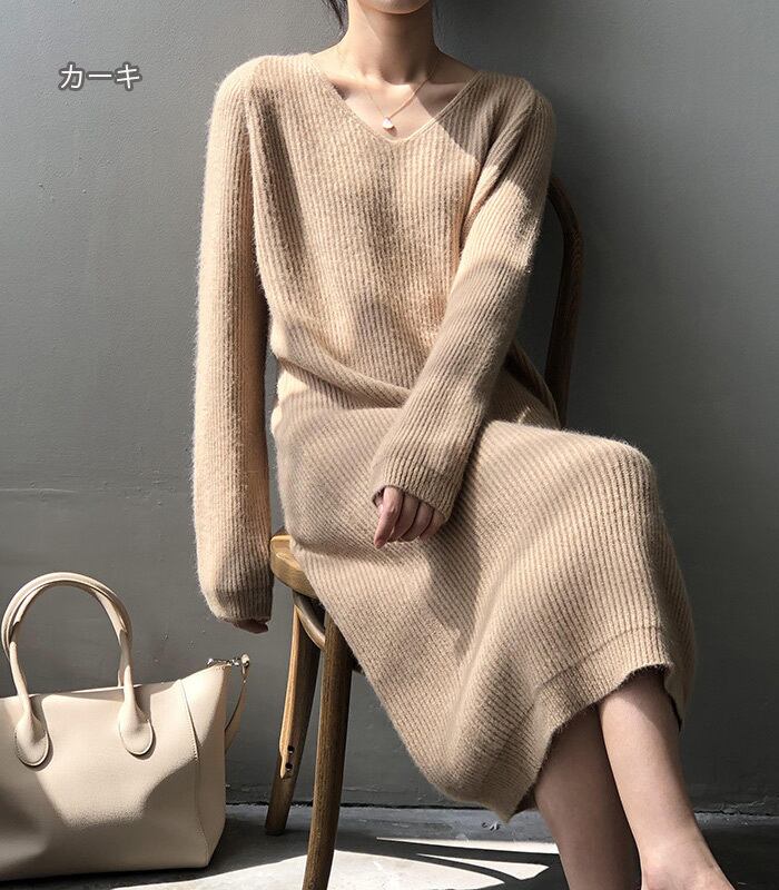 ニットワンピース ロング vネック 秋冬 春 レディース 長袖 トップス チュニック 厚手 ロング丈 ゆったり セーター レディースファッション 体型カバー 大きいサイズ マタニティ きれいめ Vネック地 上品 通勤 着痩せ 韓国風 20代 30代 40代 50代 | TPSどんどん