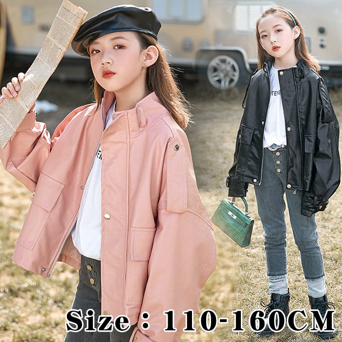 【送料無料】ジャケット キッズ ジャケット 女の子 レザージャケット キッズ 子供服 キッズコート 子供コート ショートコート ジュニア トップス キッズ服 男女兼用 春秋着 アウター 可愛い ファッション お洒落 部屋着 旅行 長袖 保温 通園 通学 部屋着 旅行 子ども服 | TPSどんどん