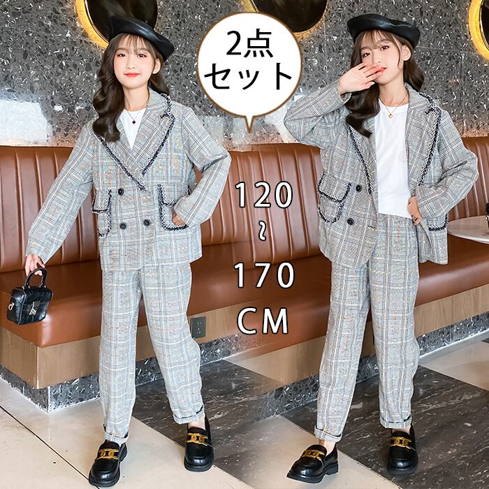 【送料無料】入学式 スーツ 女の子 卒業式 スーツ 女の子 子供スーツ 女の子 フォーマル スーツ キッズ 入園式 スーツ 子供服 パンツ 子供 大きいサイズ 卒業式 結婚式 発表会 小学生 高校生 七五三 上下セット 長袖 セットアップ チェック柄 120 130 140 150 160 170 | TPSどんどん