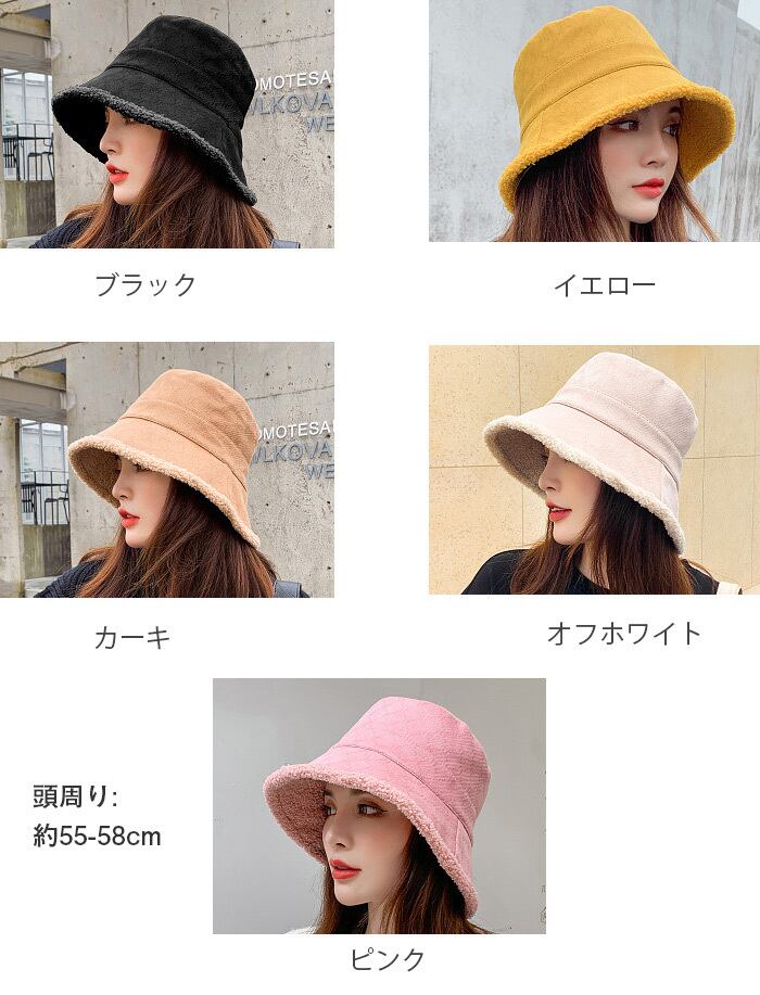 【送料無料】リバーシブル バケットハット レディース もこもこ ボアハット 暖かい つば広帽子 フェイクファー 帽子 ぼうし 秋冬 ボリューム 厚手 あったか 無地 ファーハット フリース おしゃれ かわいい 折りたたみ 小顔効果 | TPSどんどん