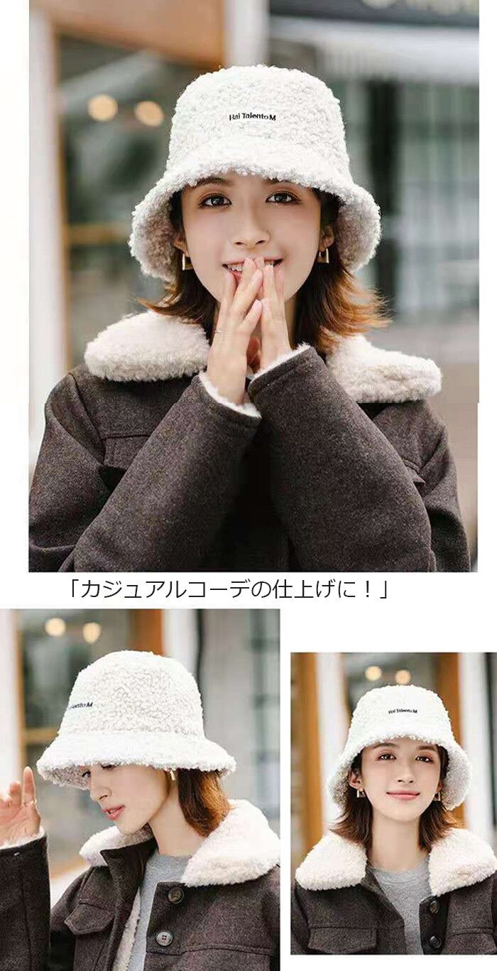 【送料無料】帽子 レディース ボアハット 秋冬 バケットハット 折りたたみ 洗える ボア ロゴ 防寒 ぼうし かわいい ファー バケットハット 春 冬 モコモコ 暖かい アウトドア つば広 ふわふわ 厚手 小顔効果 無地 プレゼント 黒 ベージュ ホワイト カラメル | TPSどんどん