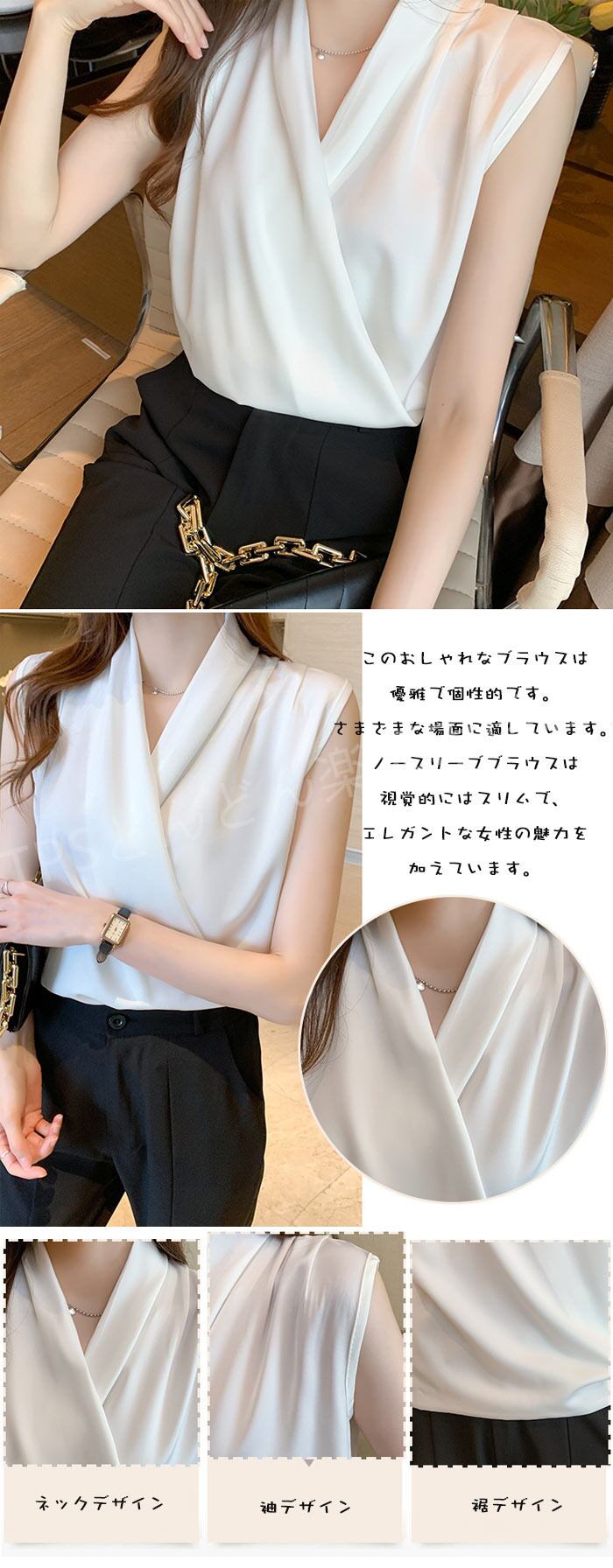 送料無料 ブラウス レディース オフィス シャツ ノースリーブ Vネック ブラウス レディース オフィス フォーマル スーツ インナー トップス オフィスカジュアル シャツブラウス ブラウス 上品 きれいめ 通勤 着痩せ 体型カバー 光沢 OL 春夏秋 | TPSどんどん