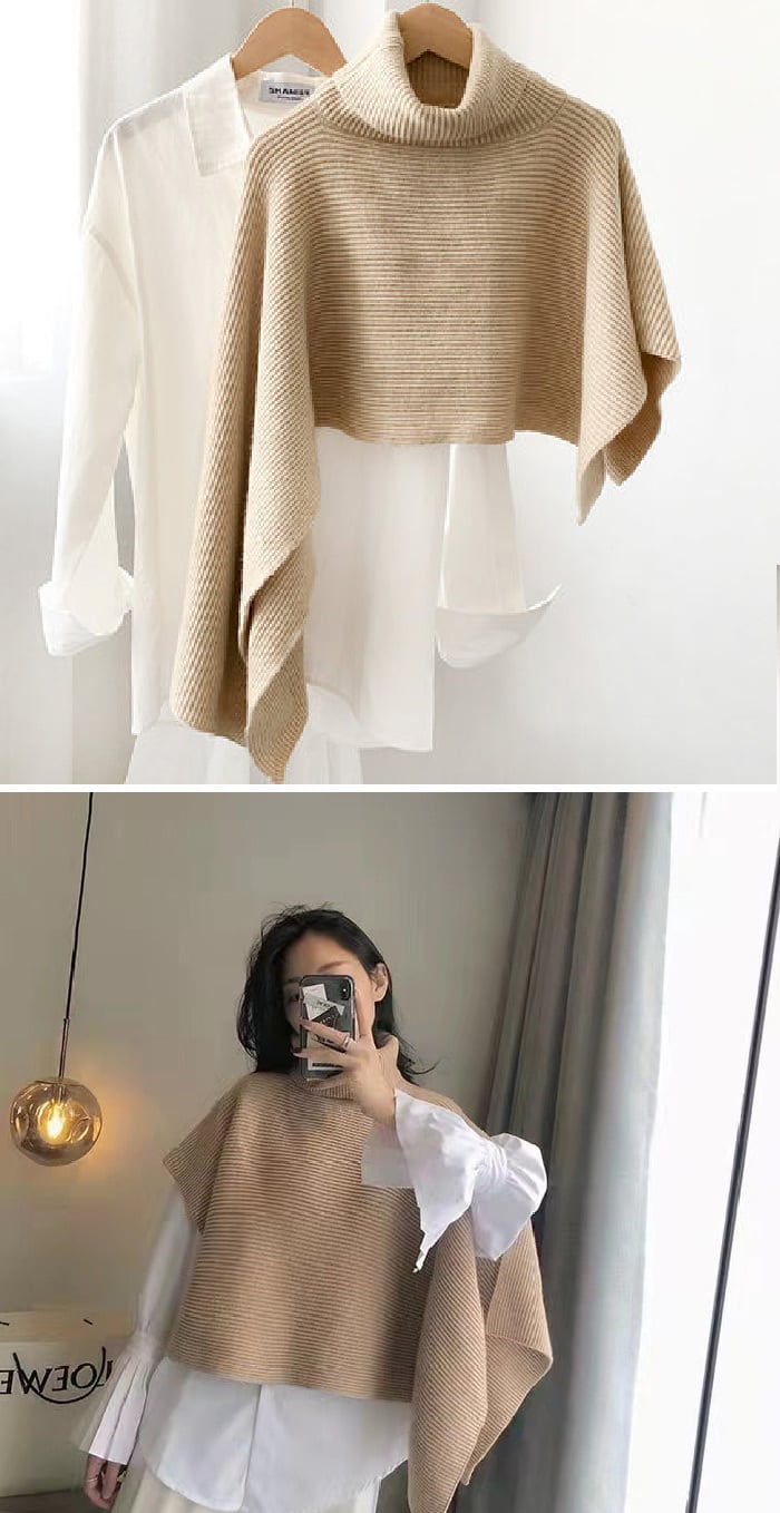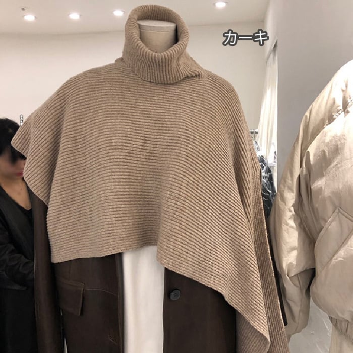 ニット ポンチョコート レディース マントコート ショール タートルネック ニット セーター ハイネック あったか ポンチョ風コート アウター フード 秋冬 厚手 ドルマンスリーブ ショール マント 無地 プルオーバー 上着 アシンメトリー オーバーコートポンチョ 防寒 | TPSどんどん