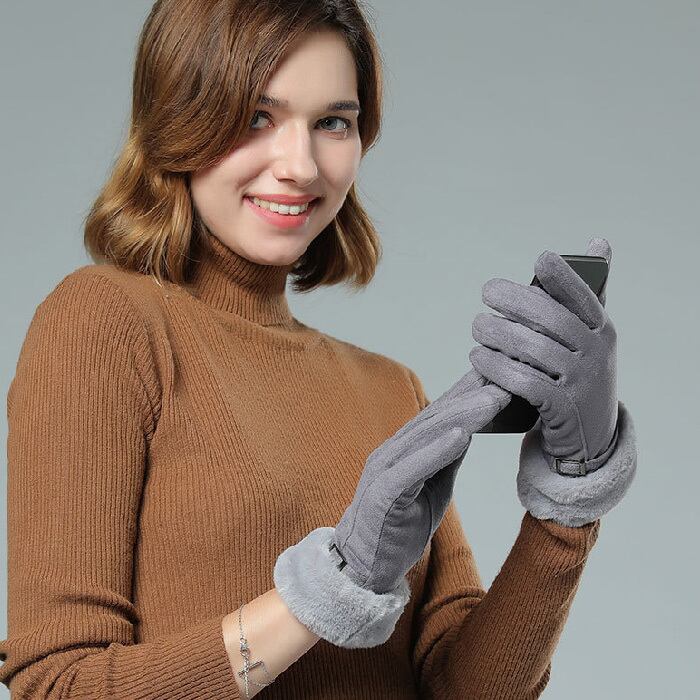 【送料無料】手袋 レディース かわいい 手ぶくろ 冬 あったか 暖かい スマホ手袋 裏起毛 もこもこ スエード グローブ 五本指 タッチパネル対応 防風防寒 秋冬 婦人 女性用手袋 タッチパネル対応 自転車 通勤 通学 プレゼント | TPSどんどん