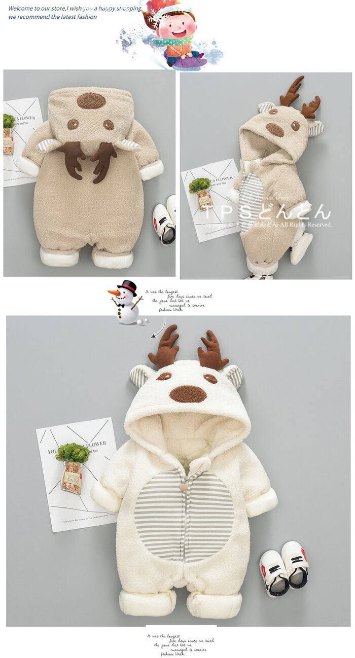 ロンパース ベビー カバーオール トナカイ オールインワン ふわふわ 秋冬 防寒保温 赤ちゃん服 裏起毛 ベビー服 新生児 もこもこ おしゃれ 寝袋 女の子 男の子 長袖 ロンパース 肌着 厚手 上品 柔らか 出産祝い ギフト プレゼント 子供服 | TPSどんどん