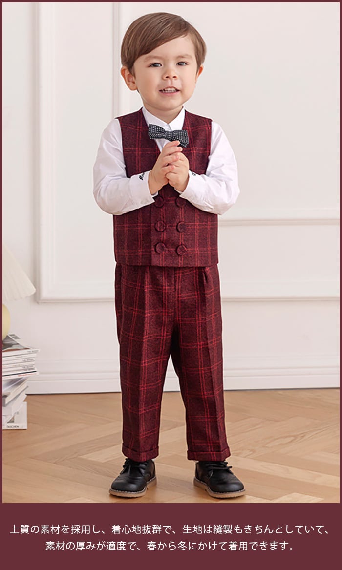 <p>タキシード風ベストが普段着として適宜、正装として発表会、パーティー、七五三、コンサート、結婚式などのフォーマル場所にも大活躍です。子供の日、入学式、卒業式、クリスマスにお祝いのプレゼントとしては子供にあげるのも人気があります。<BR>