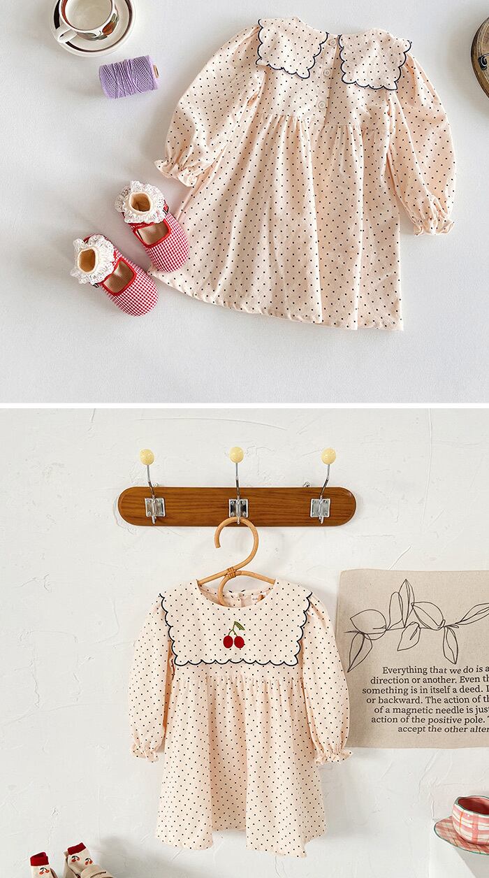 女の子 ワンピース 長袖 花柄 子供ドレス ジュニア ワンピース 花刺繍 ベビー服 可愛い ワンピース キッズ ドット柄 春 秋 襟付き 韓国子供服 五三 入学式 入園式 結婚式 ギフト 子ども服 90 100 110 120 130 140cm | TPSどんどん