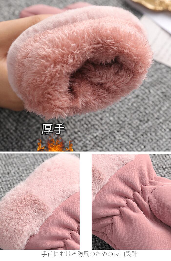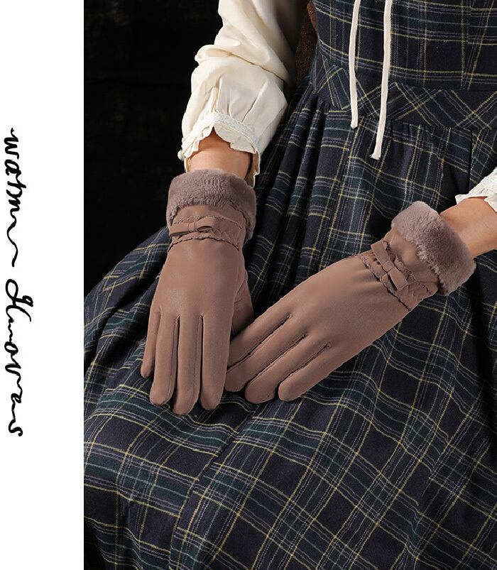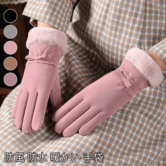 【送料無料】手袋 レディース 暖かい 手ぶくろ スマホ手袋 グローブ 冬 厚手 防寒 防風 防水 スマートフォン対応手袋 自転車 アウトドア ボア付き あったか プレゼント リボン タッチパネル対応 通勤 通学 メール便 女性用 上品 プレゼント | TPSどんどん
