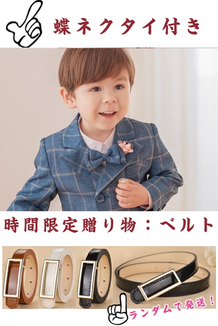 商品名:<BR><BR>【お買い得3点セット】送料無料!時間限定贈り物ベルト!今年の定番!蝶ネクタイ付きオシャレなフォーマル男の子スーツ<BR><BR>