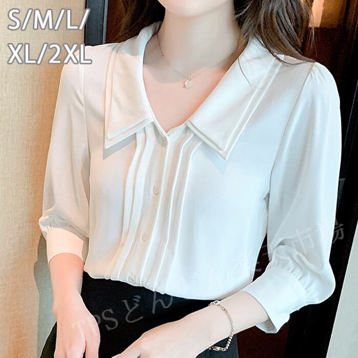 送料無料 ブラウス レディース 七分袖 オフィス tシャツ シャツ トップス 無地 春夏 プルオーバー カジュアル おしゃれ 通勤 スーツ インナー カットソー フォーマル きれいめ シフォン 涼しい 母 ママ S M L XL XXL | TPSどんどん