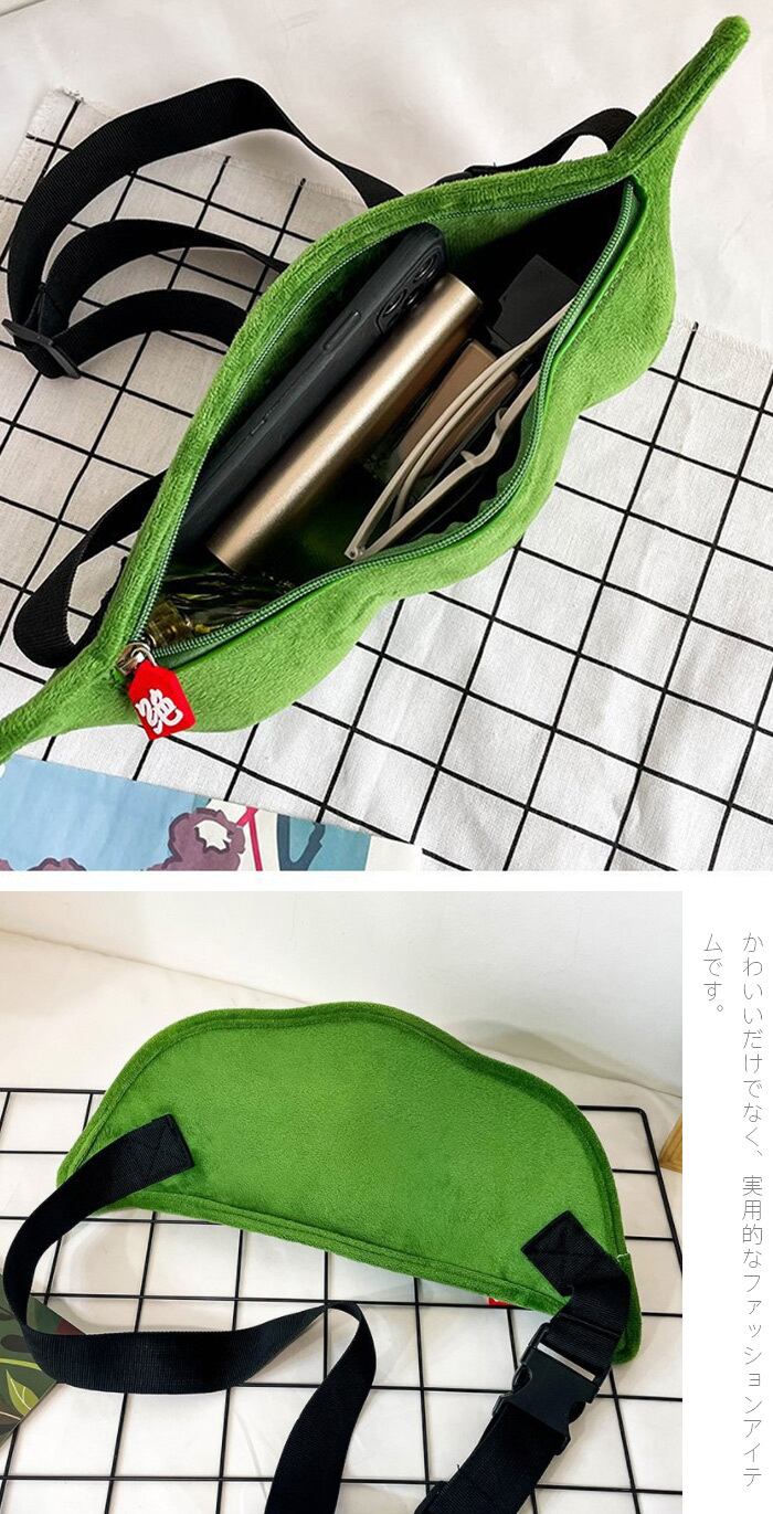 【送料無料】ボディバッグ えだまめ 可愛い枝豆 ショルダーバッグ ウエストバッグ ウエストポーチ 小物入れ 斜めがけ メンズ レディース 大容量 シンプル サブバッグ 上品 カジュアル グリーン | TPSどんどん