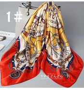 華麗なシルク調スカーフ90角正方形大判レディース スカーフ 贈り物 ギフト人気な花柄 春夏秋冬<BR><BR>