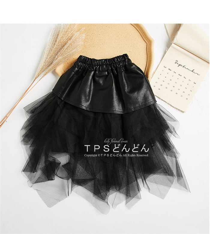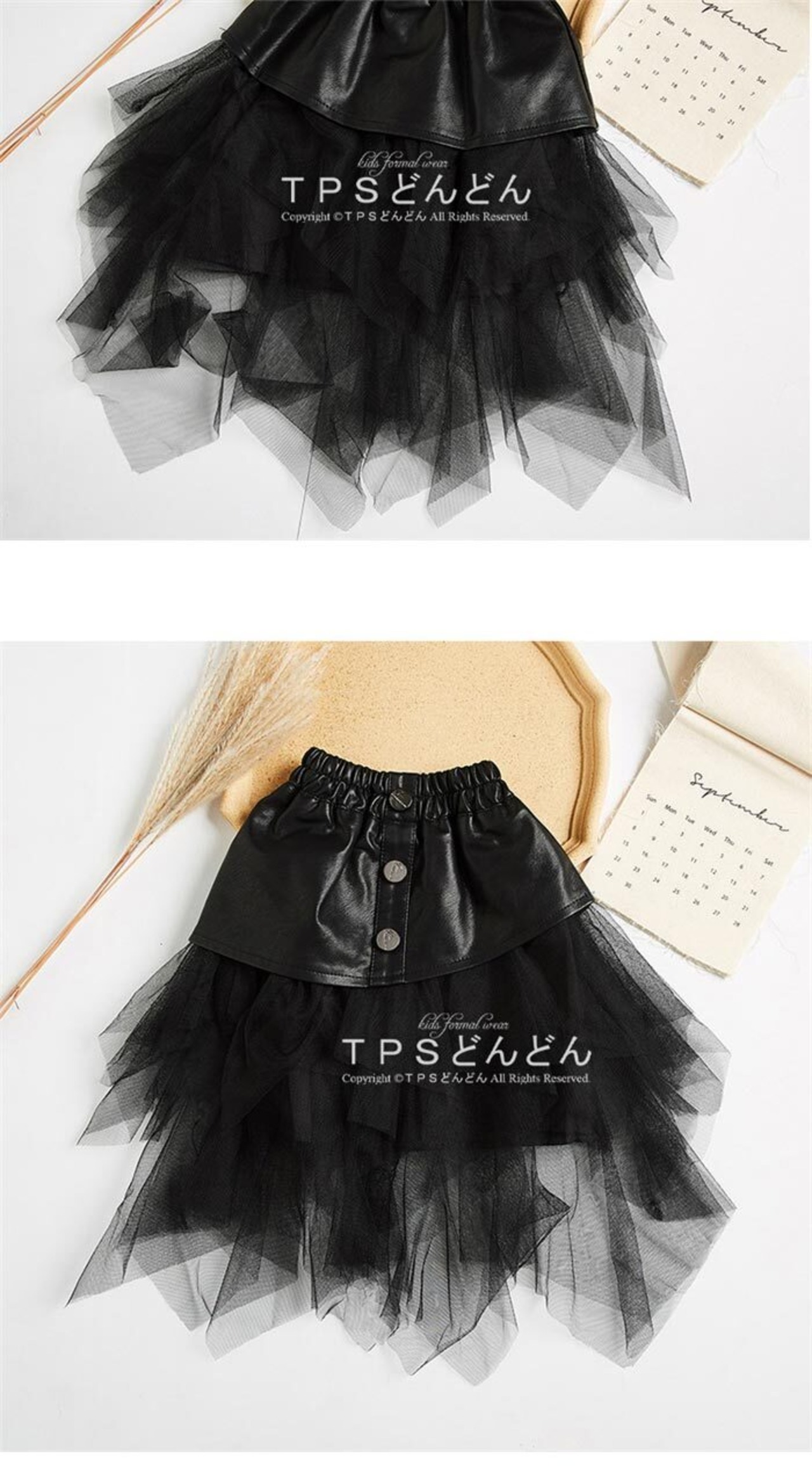【送料無料】スカート 女の子 レザースカート キッズ チュールスカート フェイクレザー 子供服 ガールズ レザー調 ボトム 重ね着 PUレザー 春秋 無地 ブラック ウェストゴム 春服 秋服 ジュニア 可愛い 薄手 キュート ミニスカート 通園 ファッション | TPSどんどん