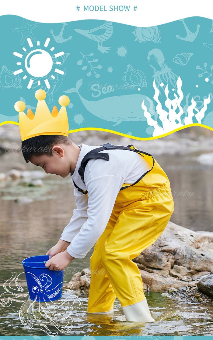 キッズ ウェーダー プレイウェア お砂場着 レインシューズ 長靴一体 胴付長靴 レインパンツ キッズ レインウェア サロペット 砂場遊び 泥遊び 川 海 田んぼ 遊び 釣り パンツとブーツ一体型 オーバーオール 雨具 梅雨対策 防水 防風 防汚 滑り止め 雨具 アウトドア | TPSどんどん