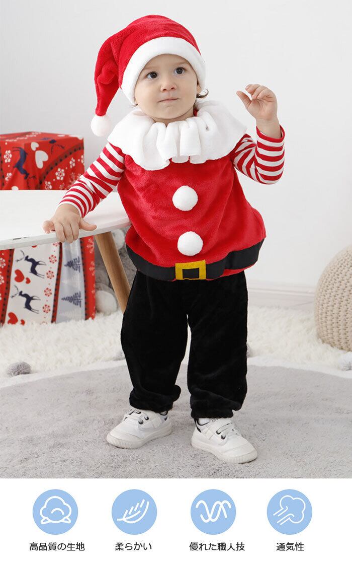 クリスマス服 サンタスーツ 4点セット サンタクロース 仮装 衣装 子供用 ベビー服 長袖 キッズ サンタ コスプレ サンタコス コスチューム クリスマス サンタクロース ウィッグ コスプ クリスマス 誕生日 プレゼント ギフト 柔らかい 帽子付き 80-120cm | TPSどんどん