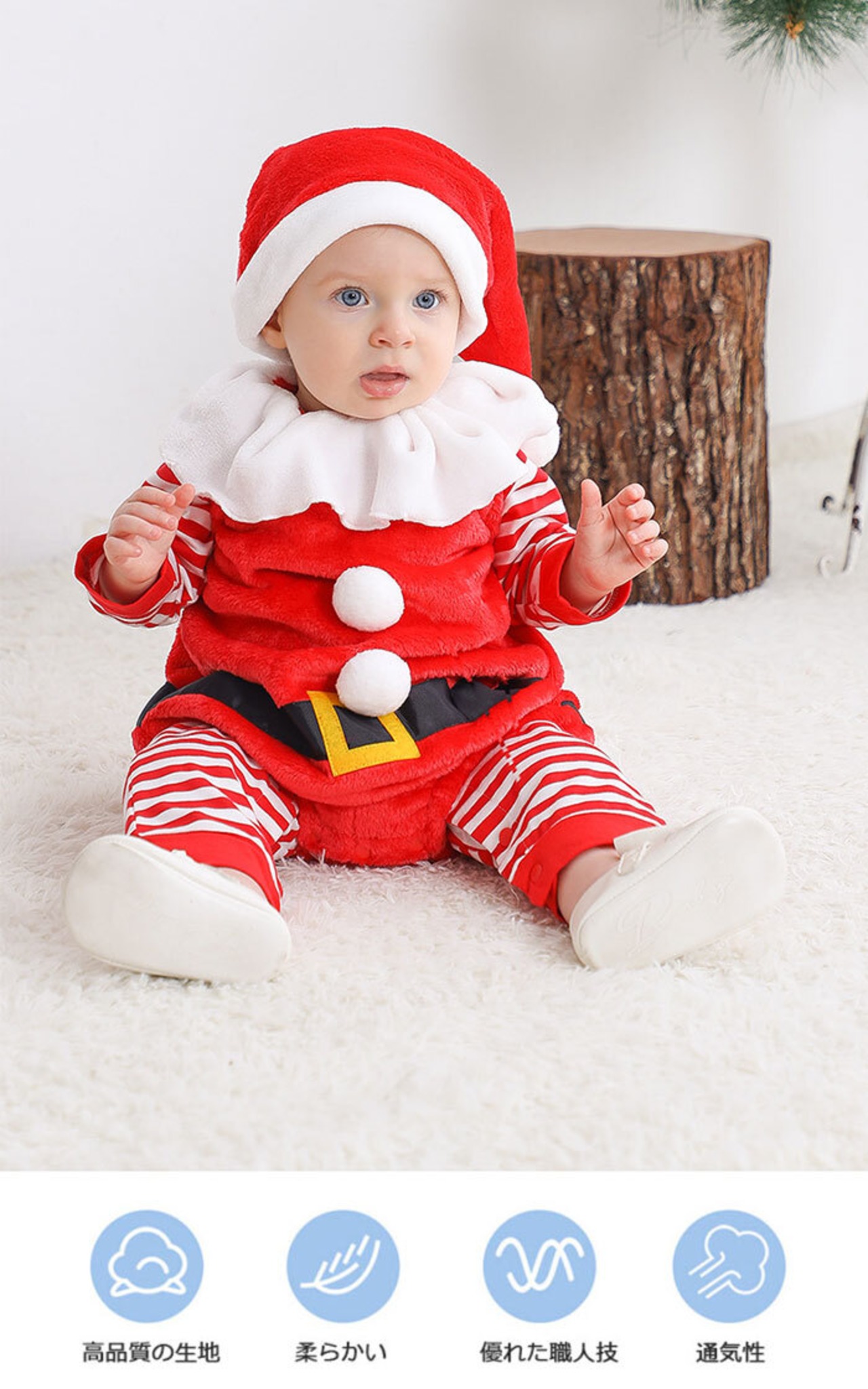 クリスマス服 サンタスーツ 3点セット サンタクロース 仮装 衣装 子供用 ベビー服 長袖 キッズ サンタ コスプレ サンタコス コスチューム クリスマス サンタクロース ウィッグ コスプ クリスマス 誕生日 プレゼント ギフト 柔らかい 帽子付き 70-95cm | TPSどんどん