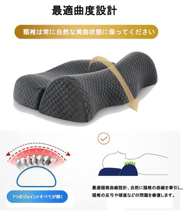 ・ 人間工学に基づいた設計、しっかりと頭、首、頚椎、肩をやさしく支えています。呼吸がやすいし、いびき防止し、首がラクし、肩こり改善し、寝姿勢が良くなります。仰向け、横向き、どんな姿勢でも寝心地がもっと安定で、体への負担を軽減して、空間を埋めるために適切な硬さを提供し、仰向けでも横向きでもどんな姿勢でも理想的な曲線を維持できるから寝違えも起こりにくいです。