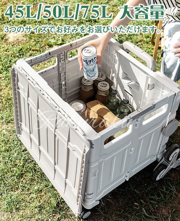 【大容量】約45L/50L/75Lと大容量で、(耐荷重は50kg)もちろんタ イヤが付いていますので、重たい荷物を入れても移動が楽々♪