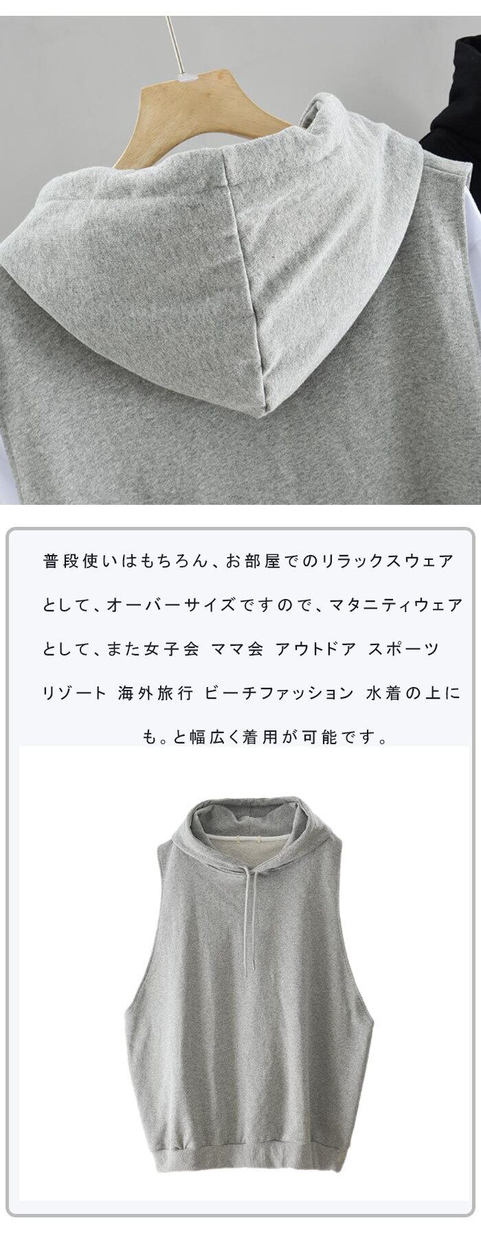 送料無料 パーカー レディース ノースリーブ フード付き ベスト プルオーバー ゆったり 重ね着 レイヤード トップス お洒落 カジュアル 春 夏 秋 薄手 韓国ファッション カットソー スポーツウェア お出かけ デート 普段着 無地 Tシャツ | TPSどんどん