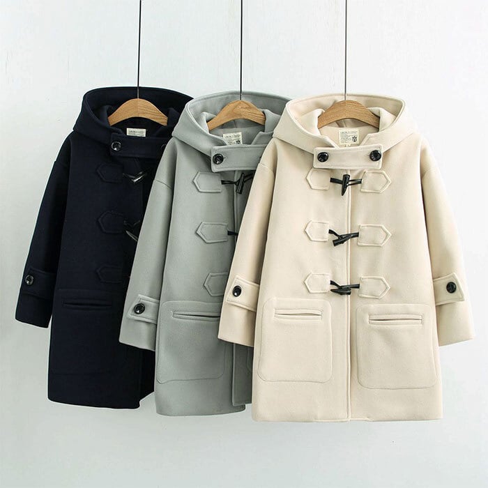 軽やかで暖かなフェイクウール素材のダッフルコート