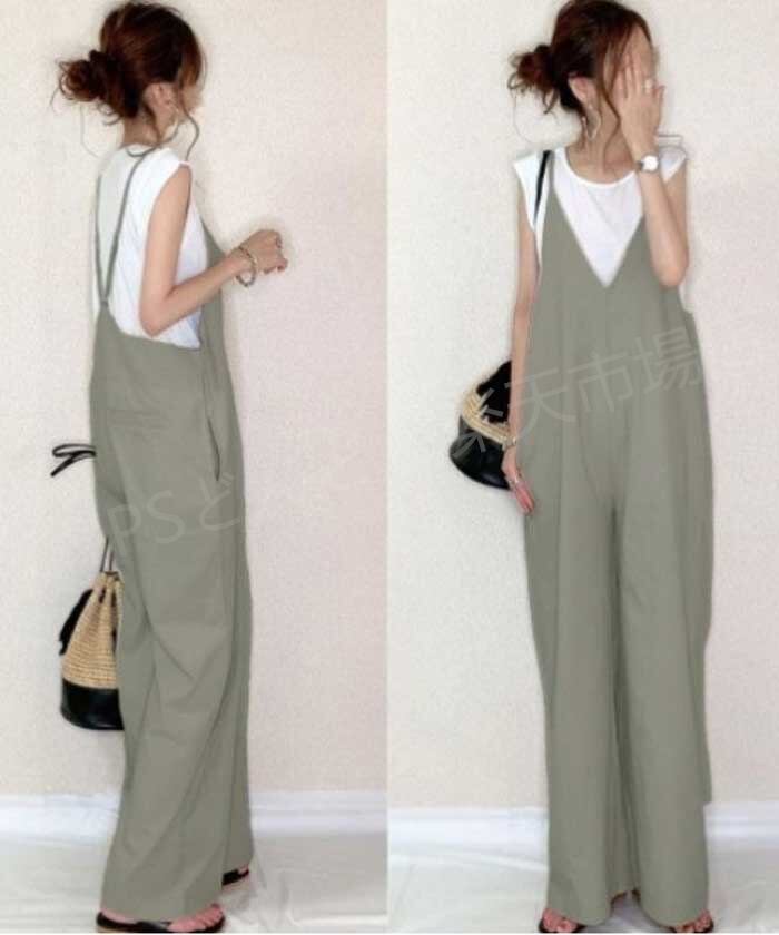 オールインワン サロペット パンツ サロペット レディース 夏 ワイドパンツ オールインワン サロペットパンツ Vネック サロペット レディース オーバーオール きれいめ vネック 着痩せ 秋おしゃれ カジュアル コーデ スタイルアップ 低身長 | TPSどんどん
