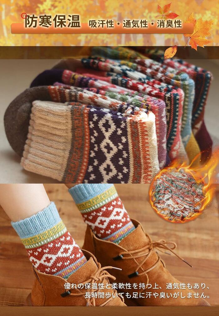靴下 冬 厚手ソックス 暖かい靴下 カラーソックス 女性用 男性用 かわいい くつした 防寒スポーツ 冬用靴下 室内 冷えとり 保温 部屋 山登りくつ下 5足セット 蒸れにくい カジュアルソックス ジャガード柄 おしゃれ 秋 冬用ソックス クリスマスギフト | TPSどんどん