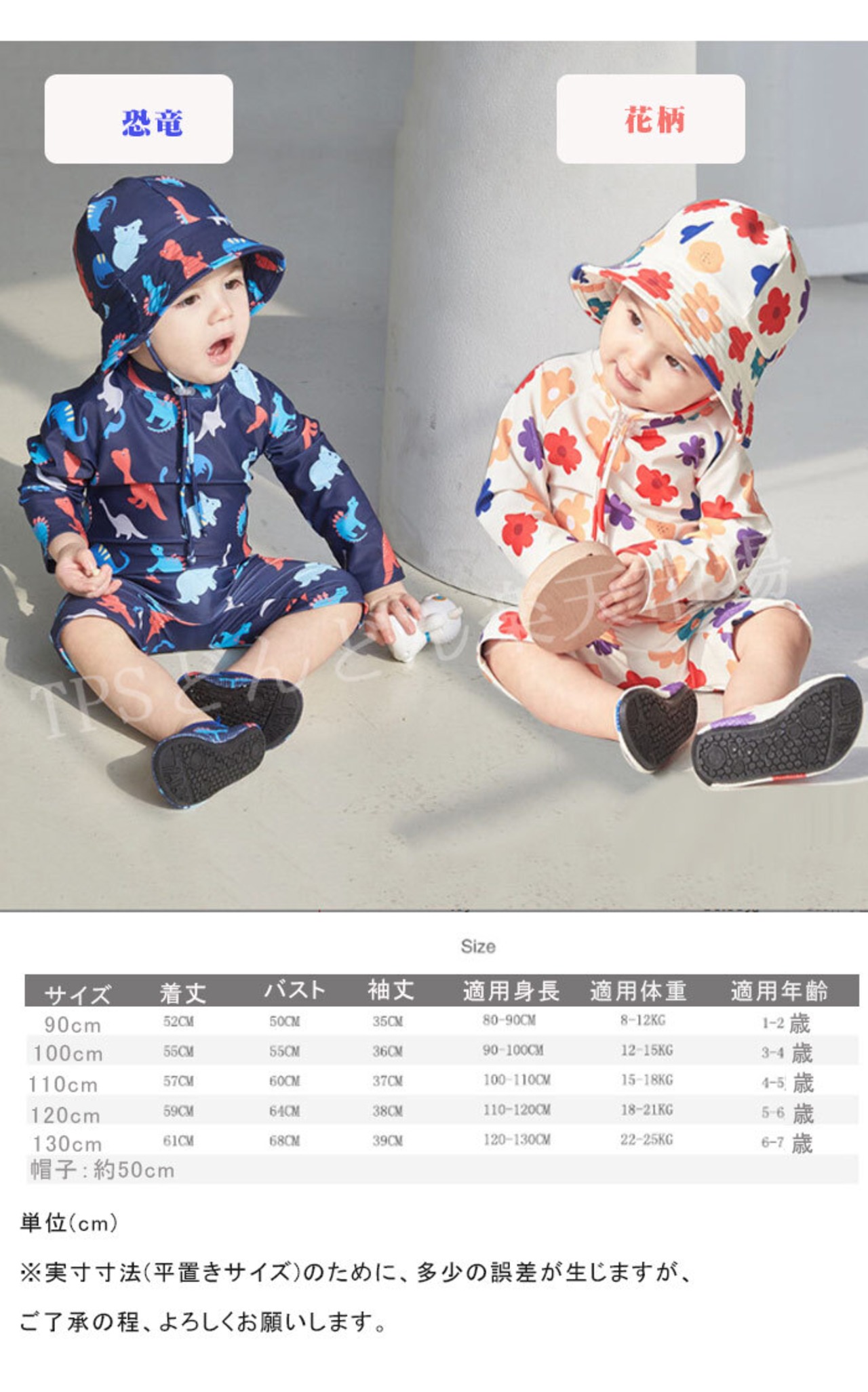 「送料無料」ベビー 水着 男の子 女の子 キッズ2点セット UVロンパース 子供 ジュニア ベビースイミング かわいい 80cm 90cm 100cm 110cm 120cm 130cm ラッシュガード スイムウェア 海プール ビーチ 紫外線対策 | TPSどんどん