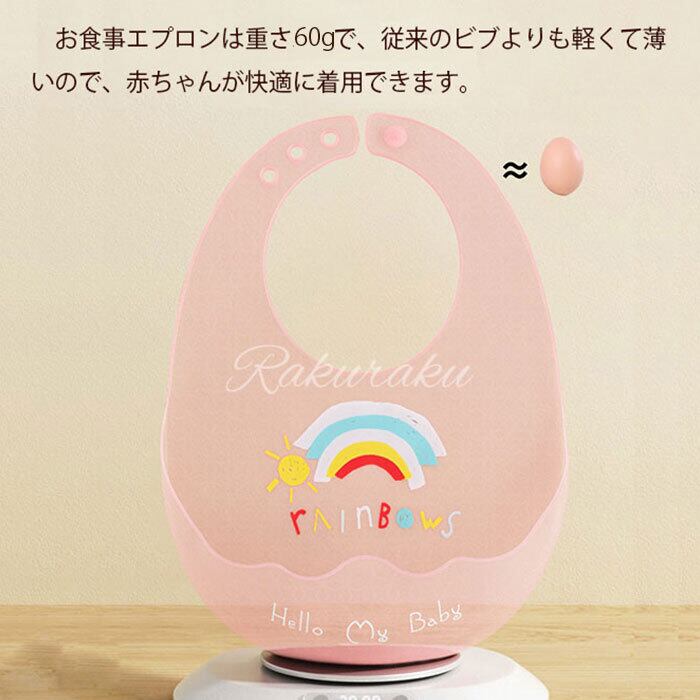 【改良設計】お食事エプロンは重さ60gで、従来のビブよりも軽くて薄いので、赤ちゃんが快適に着用できます。また柔らかい素材のため、折りたため、専用の箱もついているので、収納や持ち運びに。家庭や保育園、レストランなどで使用できる。<br><br>
