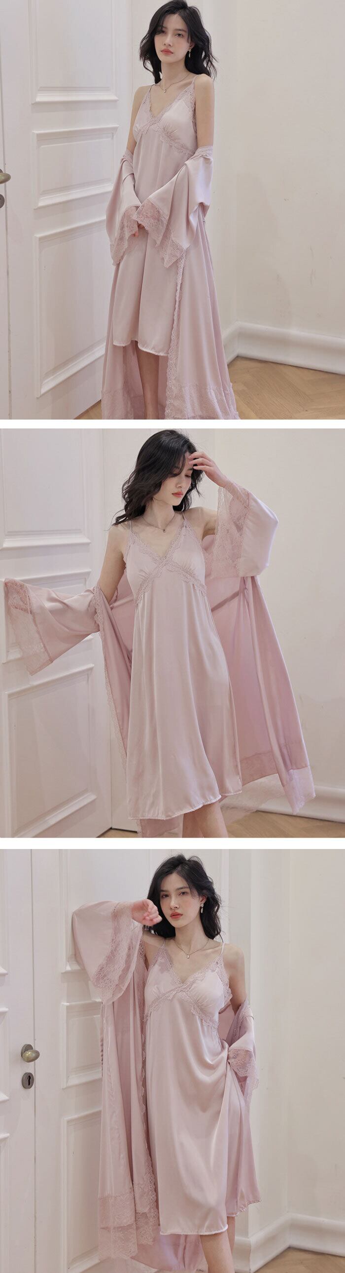 送料無料 パジャマ レディース ルームウェア セクシー サテン シルクタッチ 2点セット バレンタイン セットアップ カーディガン付 光沢 長袖 おしゃれ 部屋着 女性 大人 ワンピース 薄手 高級感 ゆったり 大きいサイズ 夏用 ルームウエア 春 夏 秋 冬 可愛い 寝巻き | TPSどんどん