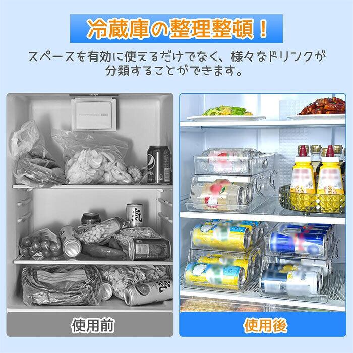 【ゴロゴロ転がり&取りやすい】自動販売機のようにコロッと転がってくるのも楽しく、便利です。先入れ先出し、賞味期限が古いモノや先に冷やしたモノから取り出し可能です。そして、便利な取っ手付き、冷蔵庫の高所からの取り出しや持ち運びが便利です。