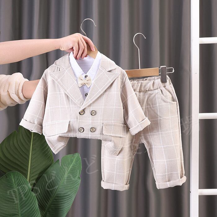 格好がいい子供スーツです! フォーマルにもおでかけにもOK! シャツは綿なのでベビー・キッズのお肌にも安心!<BR>