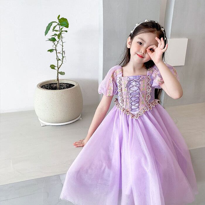 ラプンツェル風ドレス 半袖 髪飾付き 子供用 キッズ 子供 衣装 プリンセスドレス コスチューム コスプレ ハロウィン クリスマス お姫様 仮装 子ども クリスマスプレゼント ラプンツェルドレス 女の子 高級感 記念撮影 司会者 100 110 120 130 140cm | TPSどんどん