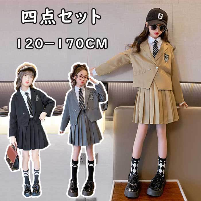 入学式 スーツ 女の子 4点セット フォーマルスーツ 女の子 プリーツスカート ネクタイ付き 白シャツ セットアップ 発表会 結婚式 卒園式 卒業式 七五三 キャンパス 長袖 子ども 子供服 学院風 可愛い お受験 ジュニア プレゼント 春 秋120/130/140/150/160/170cm | TPSどんどん
