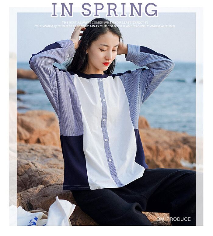 送料無料 ブラウス レディース シャツ トップス 長袖 異素材ドッキングトップス バイカラー サマーカットソー シフォンブラウス 柔らかい 薄い 無地 ファッション 家居 通勤 日常 カジュアル レディース | TPSどんどん