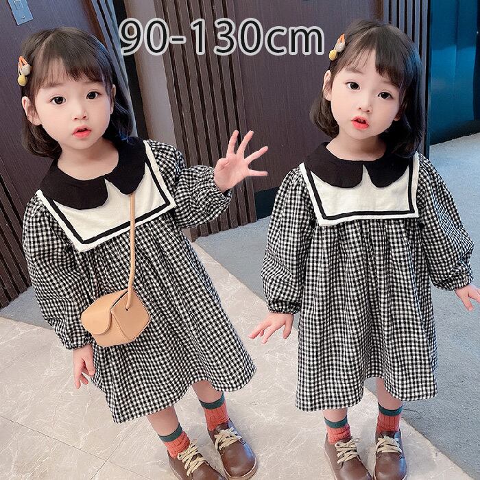 【送料無料】キッズ ワンピース 長袖 チェックワンピース 女の子 キッズ セーラー ワンピース 可愛い ガールズ ワンピース 襟付き 春夏秋 子供服 女の子 子ども カジュアル 普段着 通園 通学 結婚式 ブラック 90/100/110/120/130cm | TPSどんどん