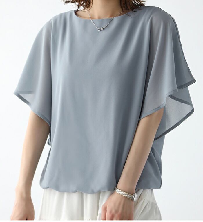 送料無料 ブラウス 半袖 フリル レディース U领 シフォントップス トップス パフ袖 ふんわり シャツ トップス 半袖 tシャツ 無地 春夏 プルオーバー カジュアル おしゃれ 通勤 スーツ インナー カットソー きれいめ シフォン 涼しい 大きいサイズ 母 ママ S M L XL XXL | TPSどんどん