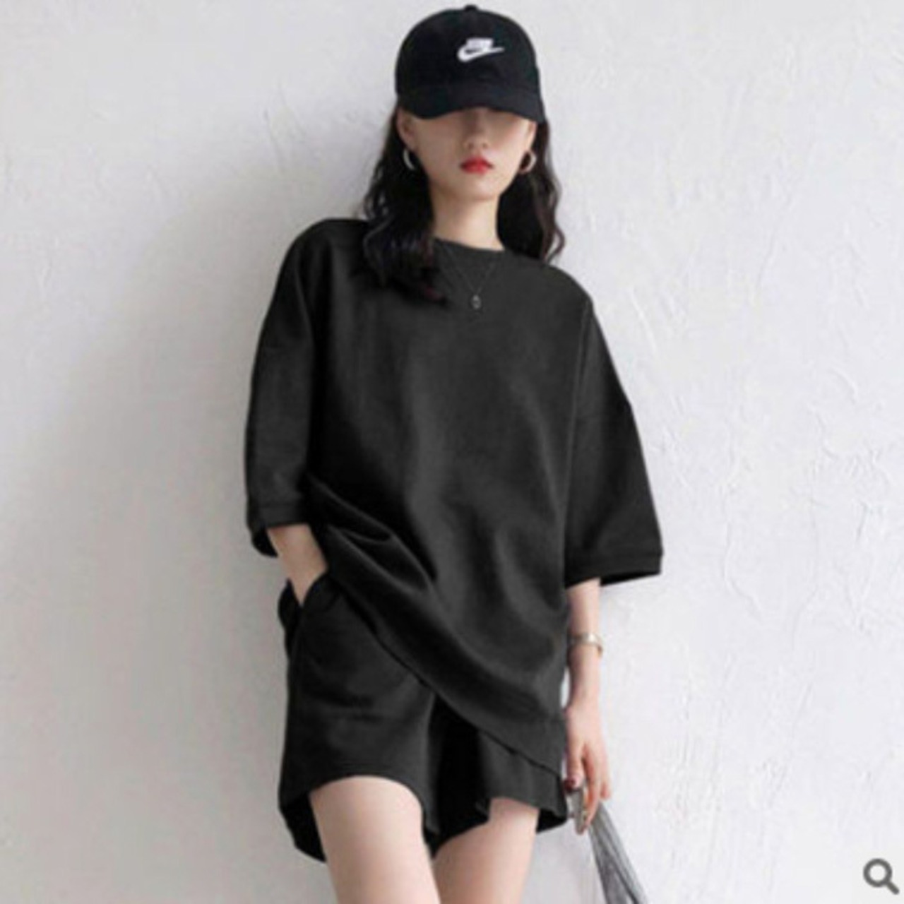 スウェット セットアップ レディース Tシャツ ショートパンツ レディース カジュアル ルームウェア 楽ちん 可愛い ゆったり ブラック 半袖ジャージ 五分袖 ショットパンツ スポーツウェア ルームウェア 部屋着 韓国風 無地 | TPSどんどん