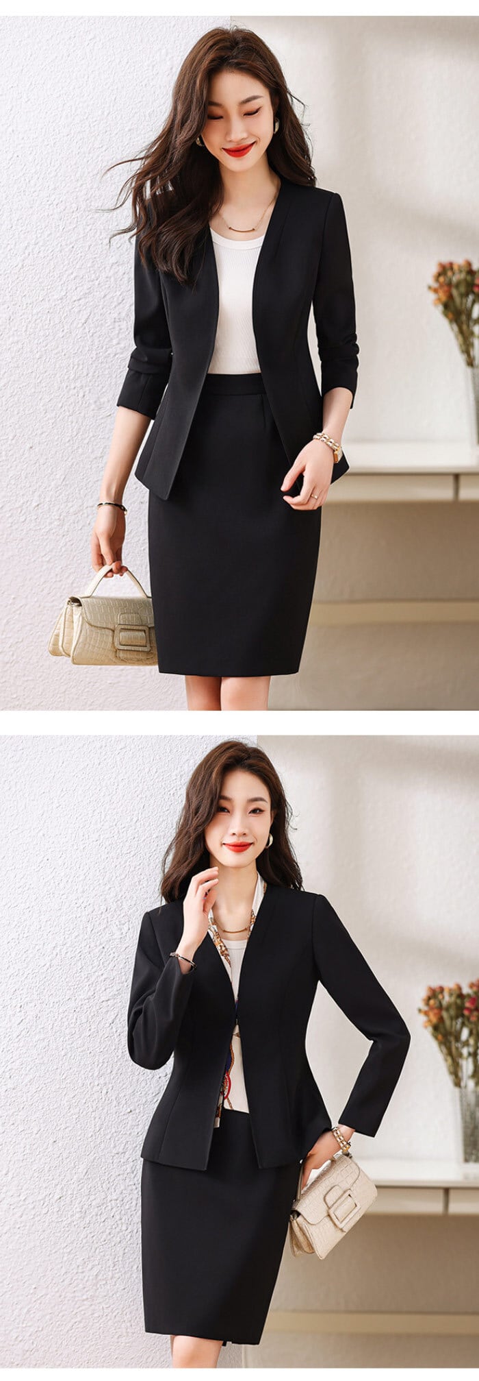 2点セットスーツ:スカート+ジャケット。エレガントで女性の洗練さを引き出してくれる上下セットアップのスーツです。きちんと感のあるしっかりとした生地感で、信頼できる印象を与えられます。<BR><BR>