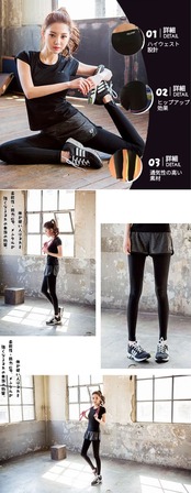 <p>2点セット:トップスとレギンス (ショートパンツとレギンスの一体型部分)<br>